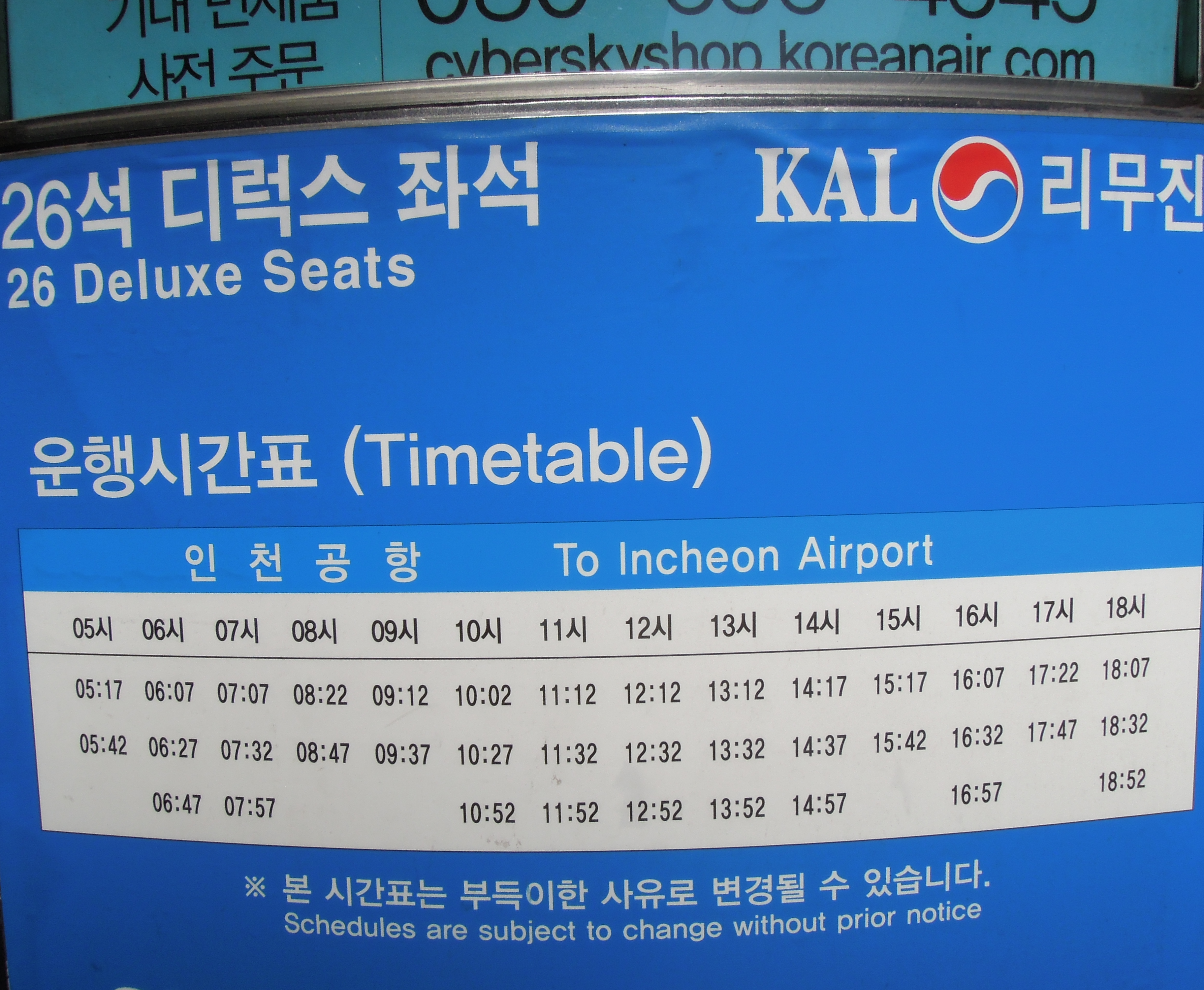 After Koreana Hotel, there are three stops in downtown Seoul, the fourth (and the last) stop being Incheon Airport. |